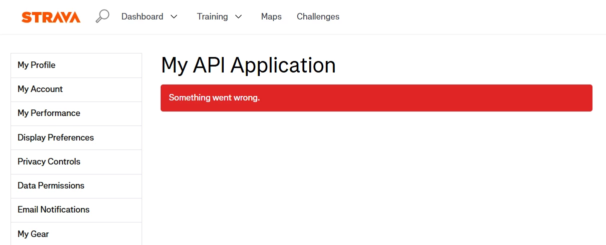I deveoped an app that is using Strava API I wanted to change to domain as it went on production on Vercel but it keeps on dislpaying “unpexpected error, try later” when I click on it to view my app stats and modify the domain.