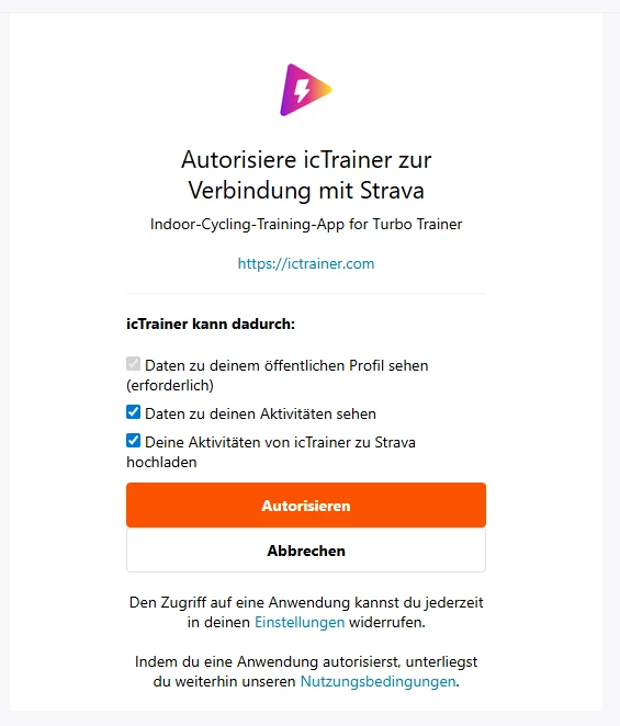 https://www.strava.com/oauth/authorize?client_id=...&response_type=code&redirect_uri=https://ictrainer.com&approval_prompt=force&scope=activity:write%2Cactivity:read