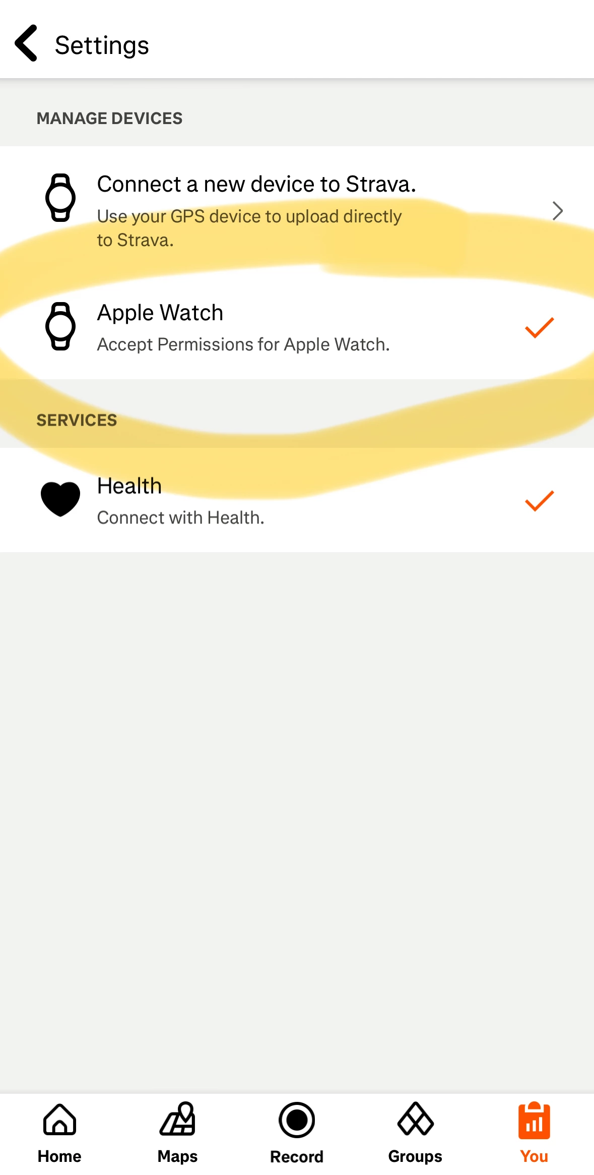 So I can’t get to my Health to check if Apple is set up to sync correctly with Strava.