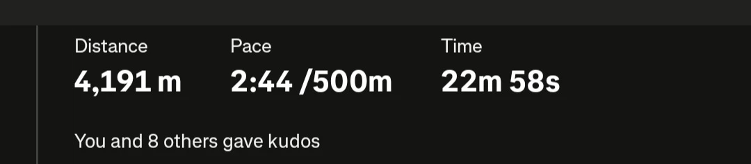 In rowing, these stats are super irrelevant and unhelpful, with workouts measured in meters and splits (/500m) like below: