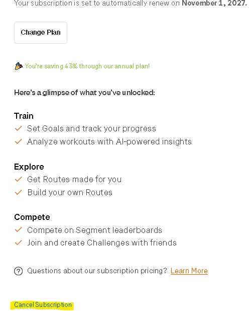 Strava seems like a scam. I'm trying to cancel my free trial and upcoming annual charge but Strava won't help