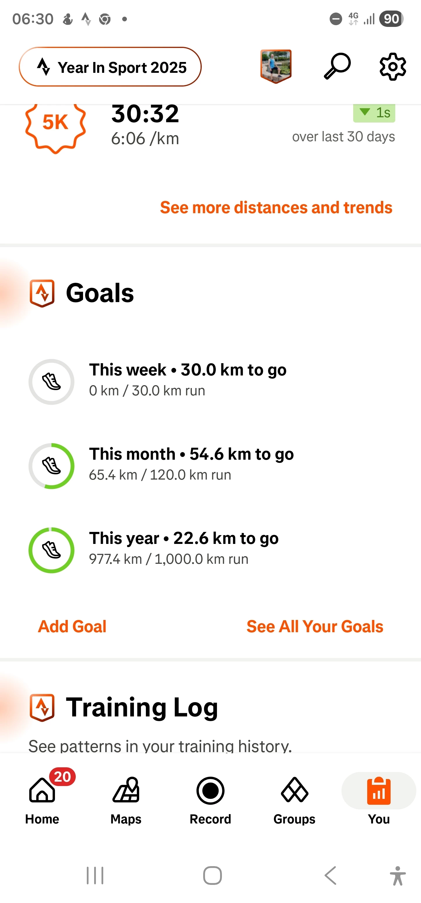 Training is not shown in Progress dashboard, but is actually recorded and shown in the goals breakdown