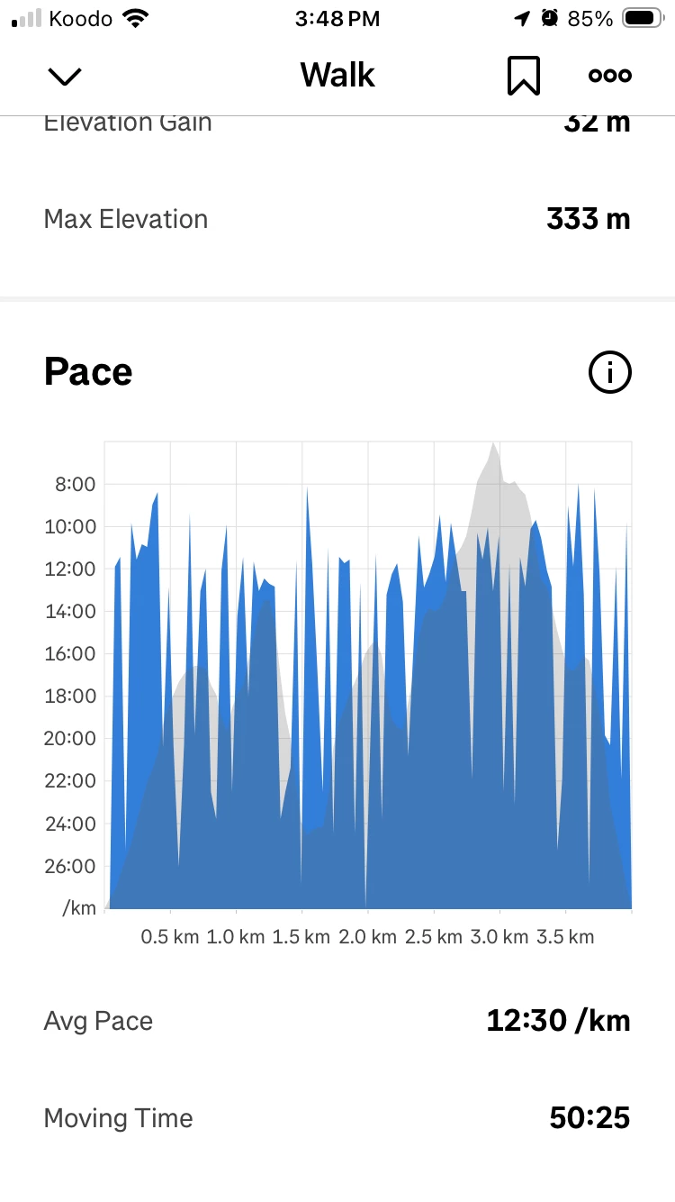 The graph of my walking pace is pretty much useless. How can the pace be so erratic? That certainly not how I’m walking