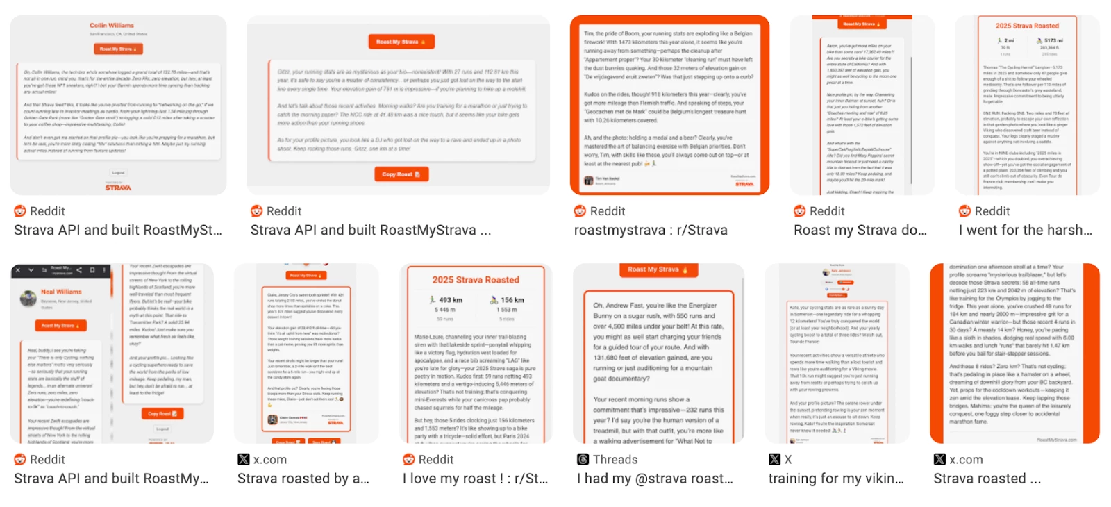 The growth of Roast My Strava has come almost entirely from users sharing their roasts. But this wasn't all luck; it was through intentional design.