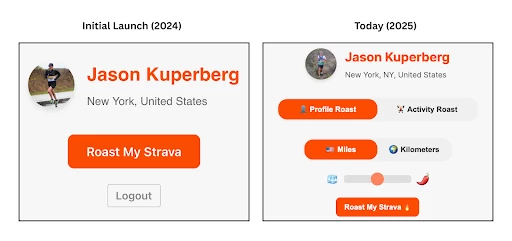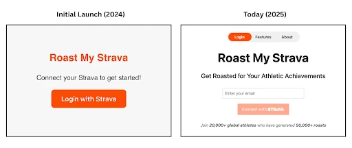 Software needs to be intuitive. The entire first version of the app was an email field and a "Connect with Strava" button. After authentication, users saw one thing: a button that said "Roast My Strava."