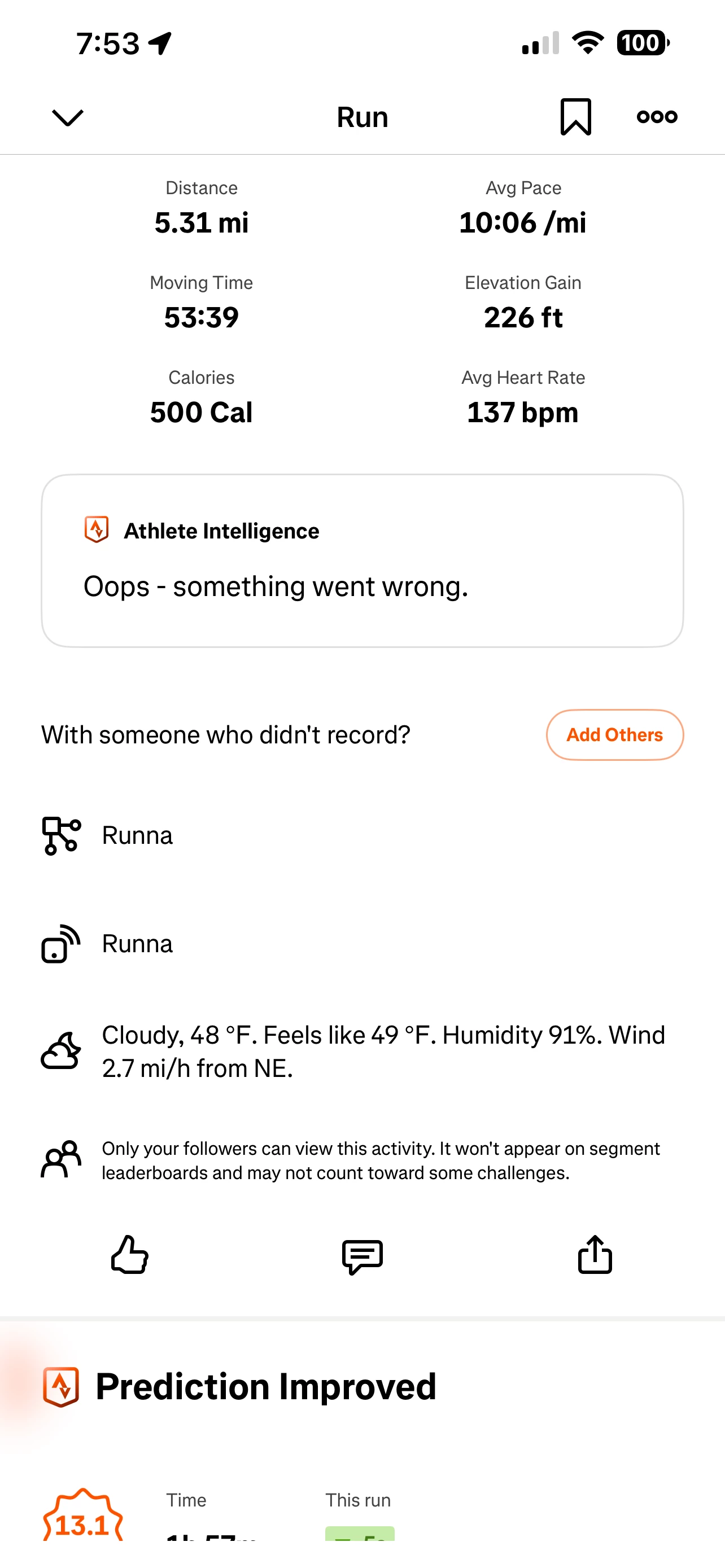 I'm experiencing an issue with the Athlete Intelligence feature in the Strava app. Every time I finish an activity, I receive an error message saying "Oops – something went wrong," and no summary is generated.