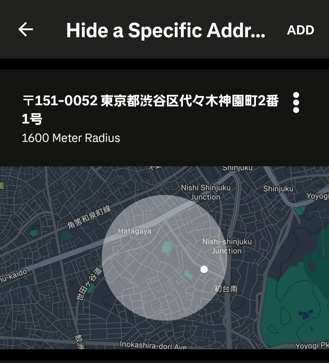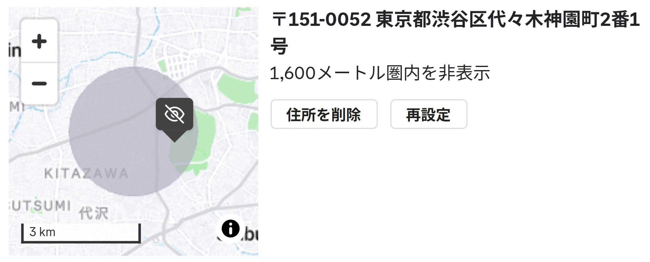 Example: 〒151-0052 東京都渋谷区代々木神園町2番1号 (2-1 Yoyogi Kamizonocho, Shibuya-ku, Tokyo 151-0052, Japan)