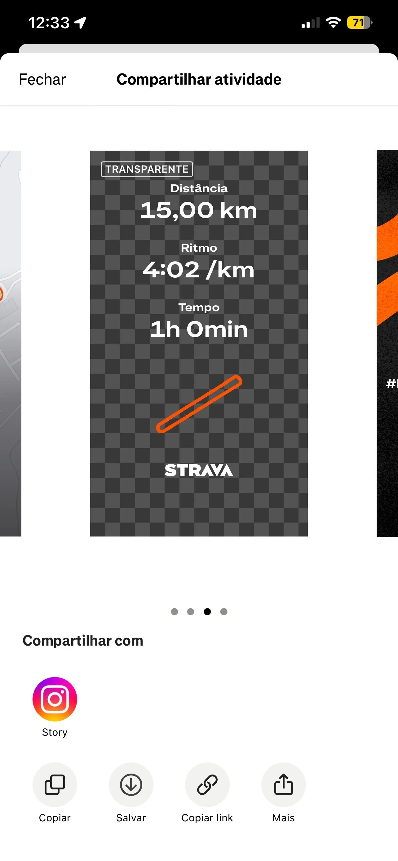 Meu strava so tem essa opcao enquanto outros tem 2 ou 3 opcoes em png para pegar em png e colocar na foto.