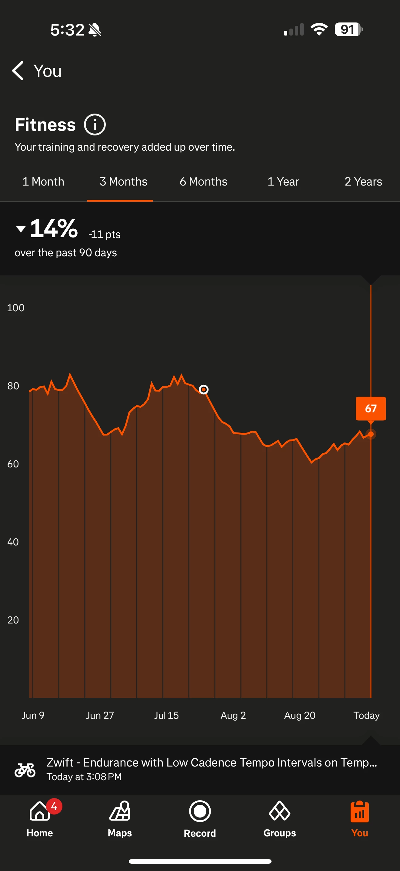 Has this happened to anyone else? I logged an activity and checked my fitness score and the entire plot is 10 points lower than it was yesterday.