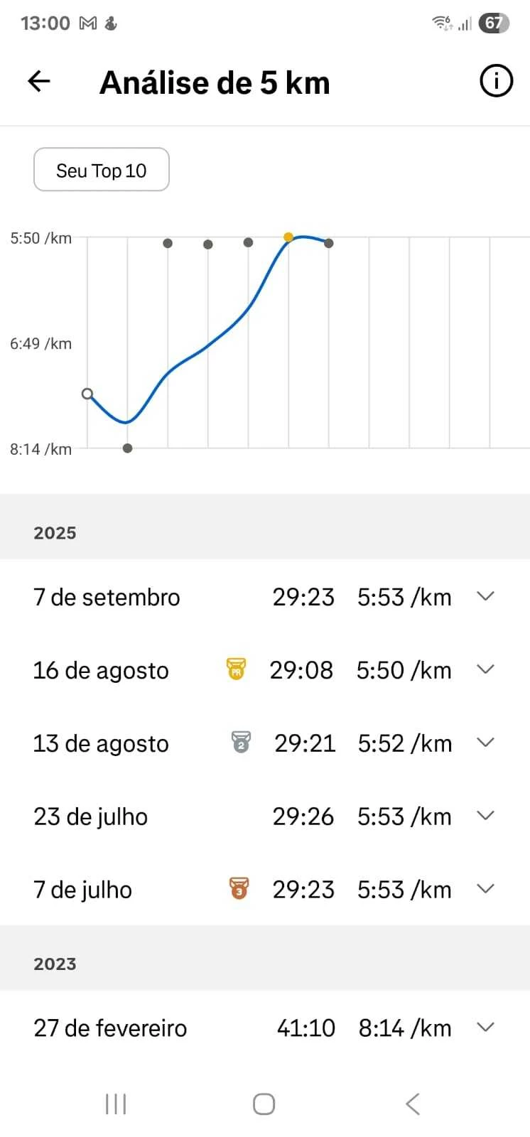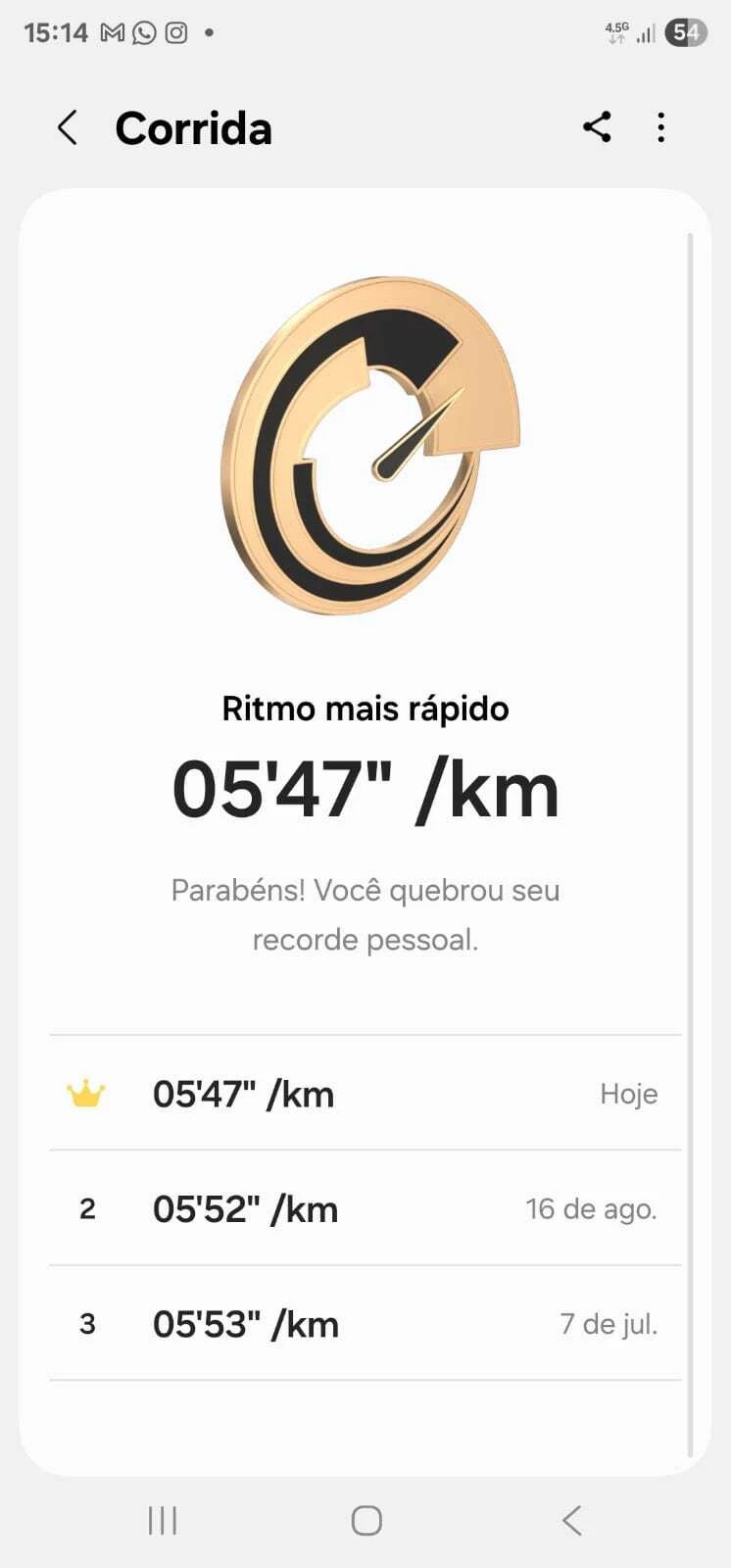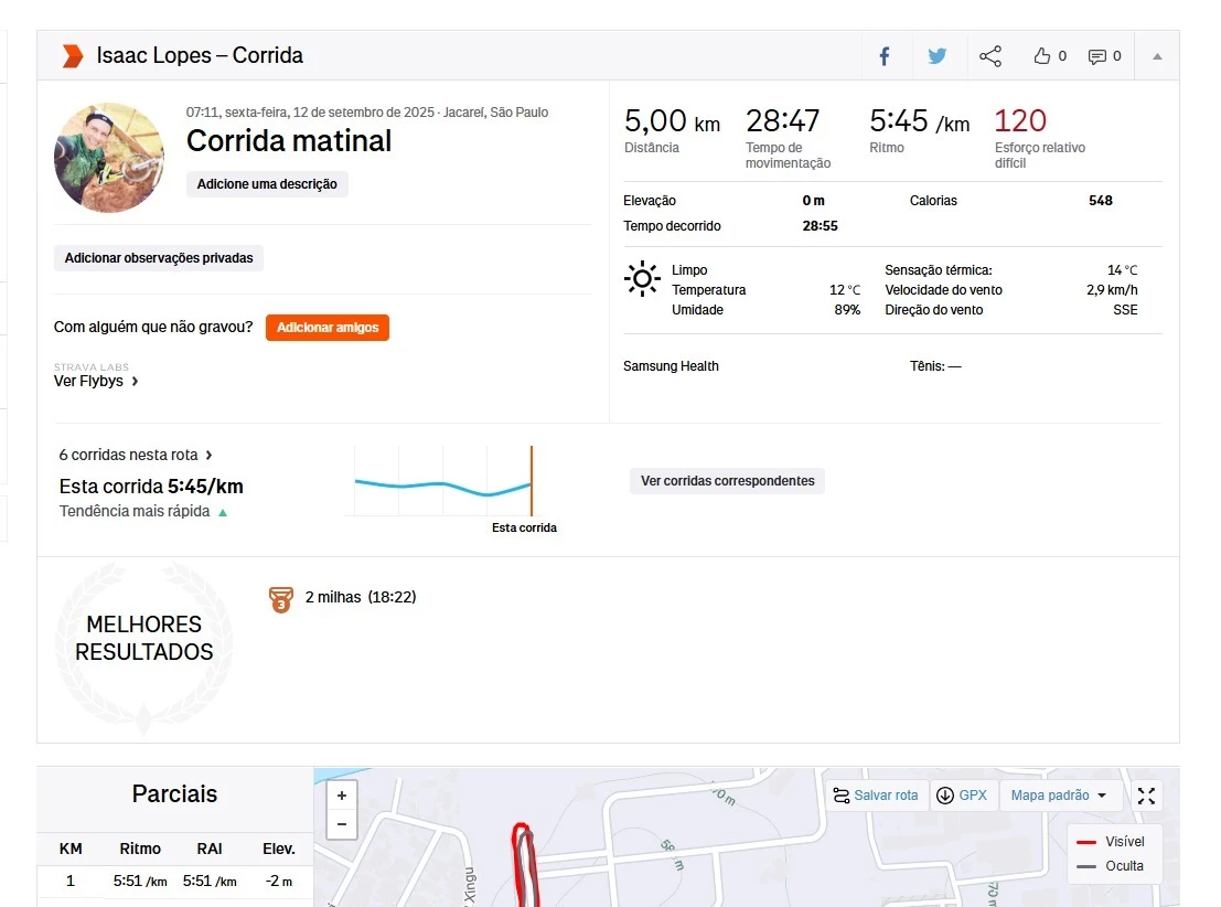 Porém, o Strava não atualizou corretamente e continua mostrando apenas recordes anteriores.