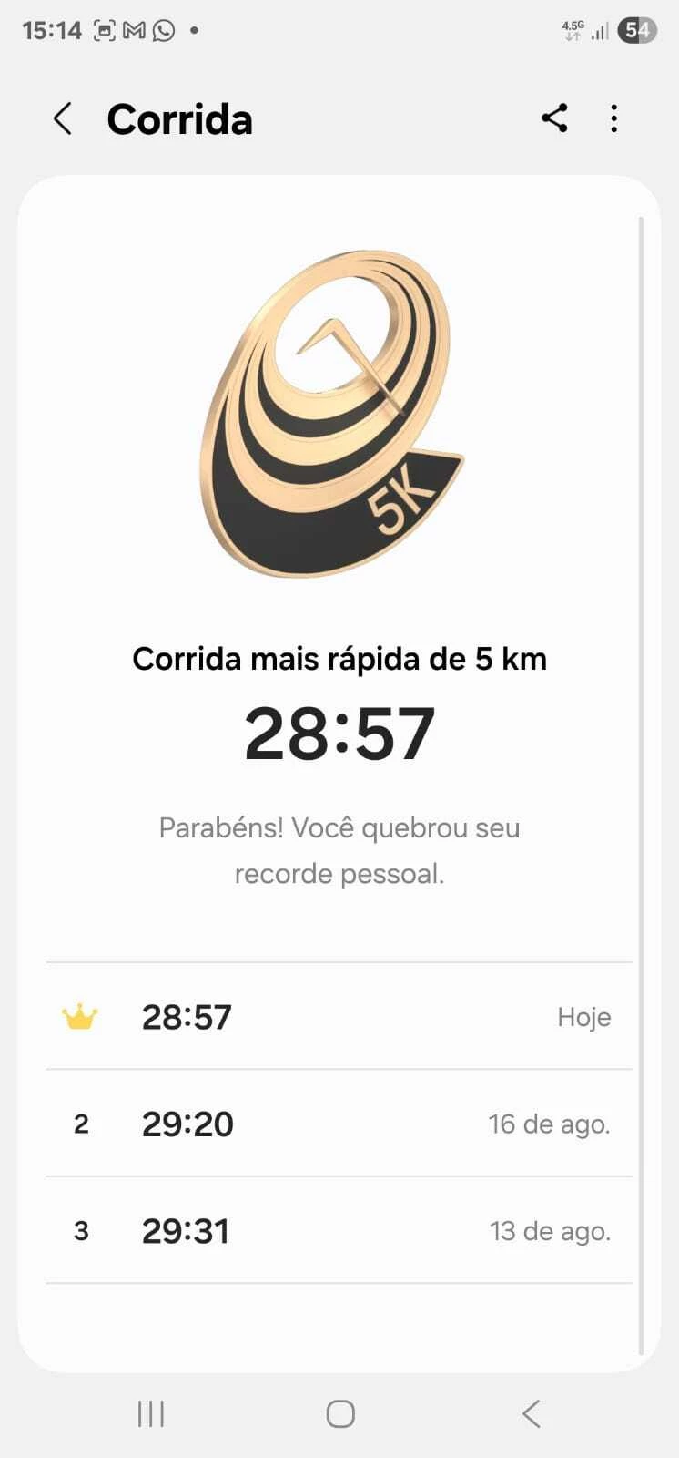 Realizei uma corrida de 5 km com tempo de 28:47 (tempo de movimento) que deveria ser registrada como meu novo RP1.